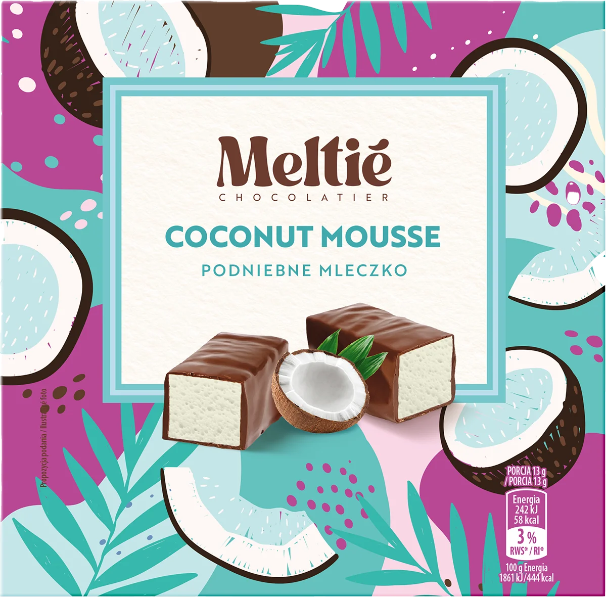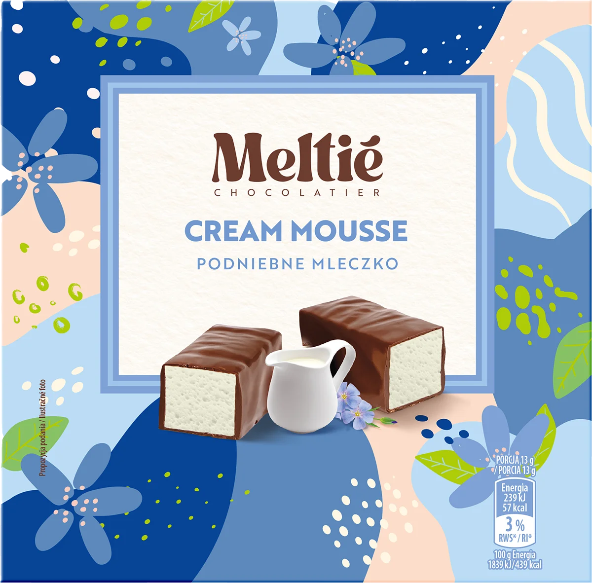 Obłoczki puszystego musu lub musu z galaretką otulone cieniutką warstwą czekolady Meltié. 6 intrygujących smaków zachwyci Twoje podniebienie.