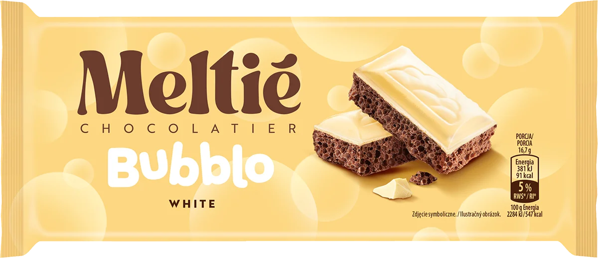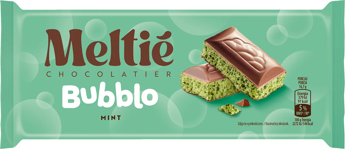 Zabawa z bąbelkami! Meltié Bubblo to czekoladowa lekkość w trzech pysznych smakach: biała, miętowa i karmelowa!