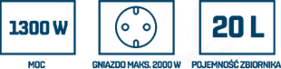 Odkurzacz warsztatowy NITEO to niezbędne wyposażenie każego garazu i warsztatu. Umożliwia usunięcie zarówno pyłów, jak również cieczy (np. płynów). Stalowy korpus zapewnia trwałość i wytrzymałość, a tekstylny worek filtrujący zapobiega uszkodzeniom silnika. Wbudowane gniazdo obsługujące urządzenia o mocy do 2000 W sprawia, że odkurzacz NITEO może pełnić funkcję przedłużacza